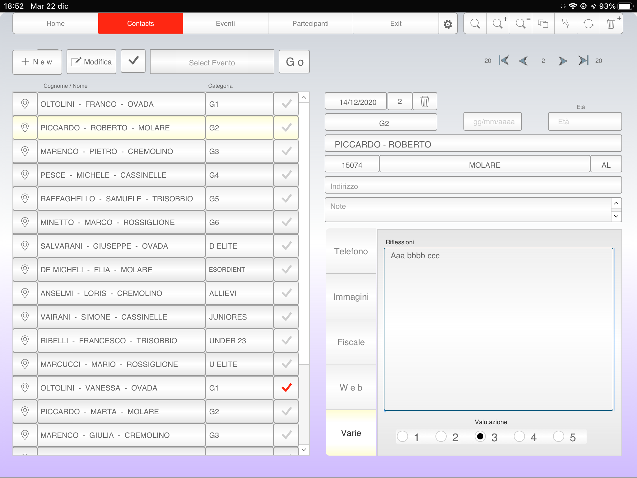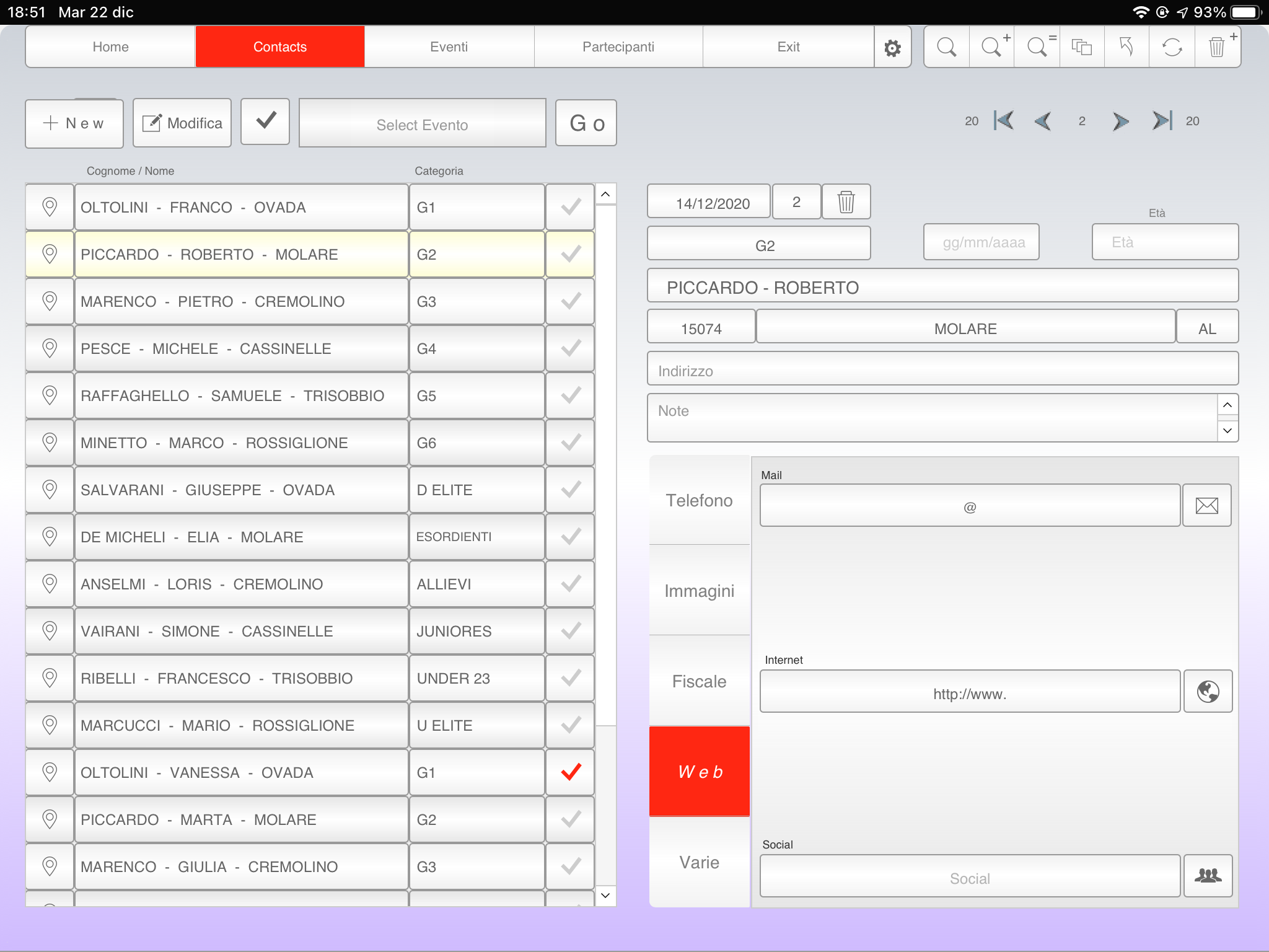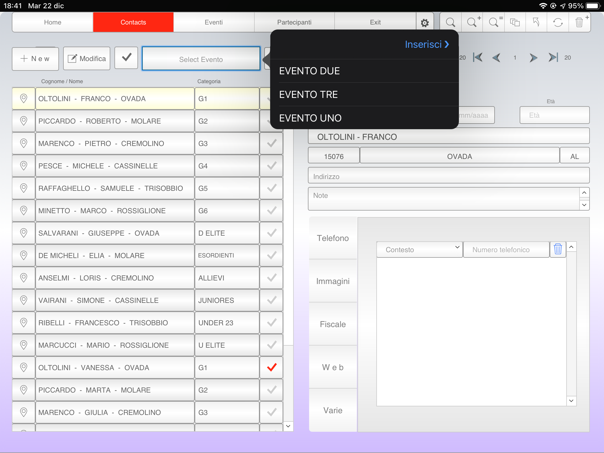 Selezionerete SOLO i contatti che parteciperanno all' Evento che avrete scelto tra quelli creati in precedenza.